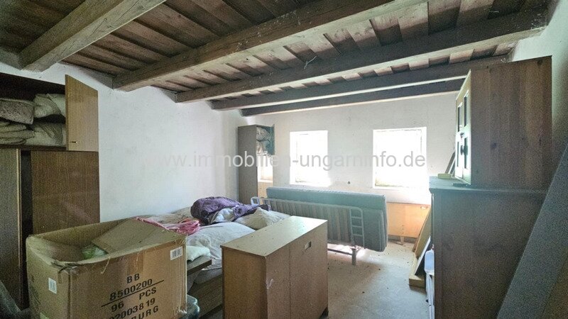 Das zweite Gebäude ist ca. 60 m² groß und muss renoviert werden. Derzeit besteht es aus 2 Räumen; der Betonboden des zur Straße hin gelegenen Raums und die authentische Balkendecke sind bereits fertiggestellt, die Gestaltung der übrigen Räume wartet auf den neuen Käufer. Im Kaufpreis enthalten sind die Einrichtung des ersten Gebäudes sowie die Fenster und Türen und andere Baumaterialien des zweiten Gebäudes.