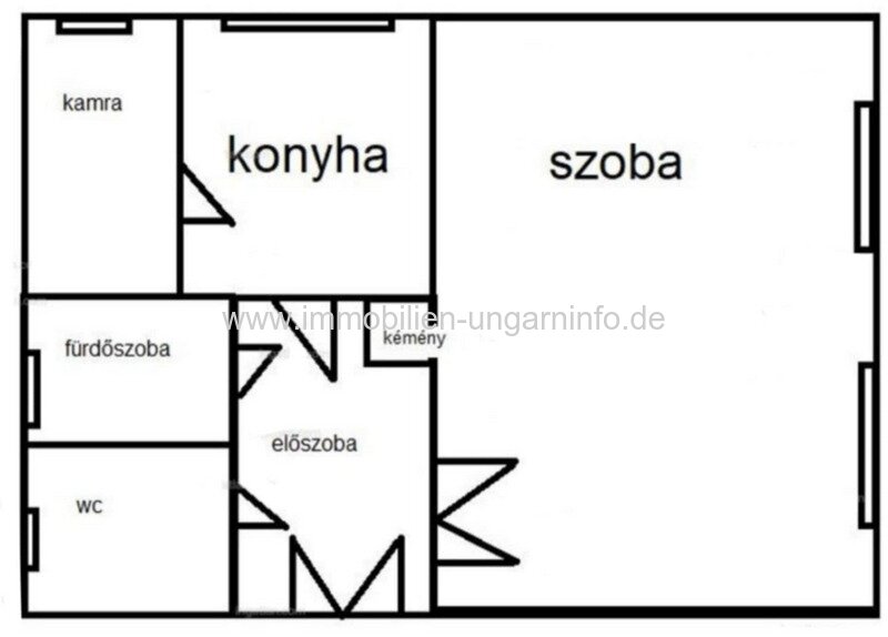 Zimmer: ein 17 m² großes Zimmer, Flur, Bad, separates WC, Küche, Speisekammer.