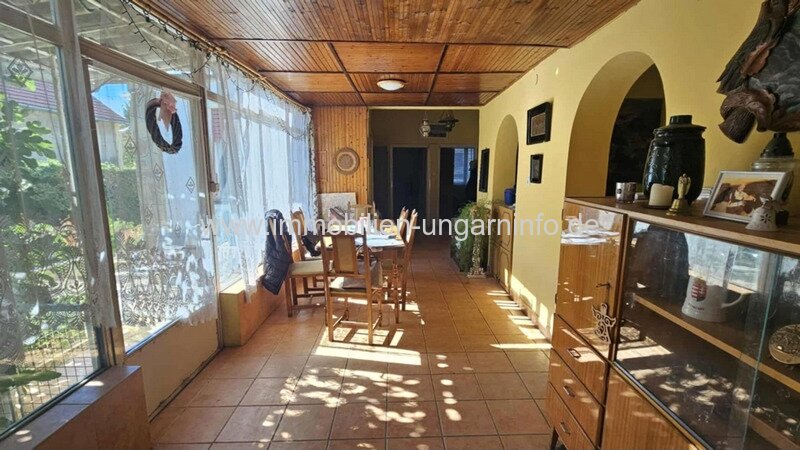 In einer Kleinstadt, 14 km vom Plattensee entfernt, biete ich ein Einfamilienhaus mit ca. 97 m² Nettofläche und einem eingezäunten 950 m² großen Grundstück zum Verkauf an. Das Backsteingebäude befindet sich in gutem Zustand, das Dach wurde 2020 saniert. Wasser-, Strom- und Gasnetz wurden 2015 erneuert.