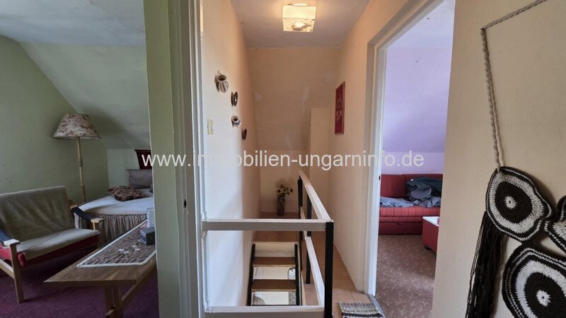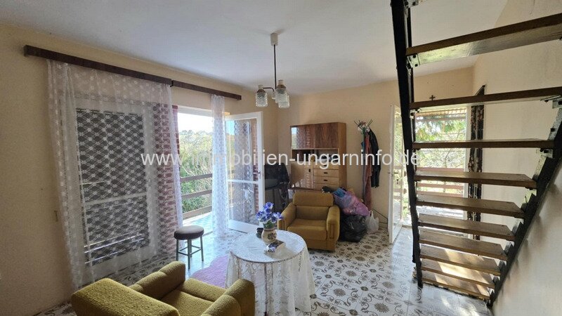 In Nagykanizsa-Látóhegy biete ich ein Ferienhaus mit Weinkeller und umzäuntem Garten zum Verkauf an. Das Anwesen mit 3357 m² Grundstück eignet sich ideal als dauerhafter Wohnsitz. Das dreistöckige Gebäude, erbaut 1983 auf einem Betonfundament mit Ziegelwänden, befindet sich in gutem baulichen Zustand. Räume im Untergeschoss: Weinkeller und Weinpresse; Erdgeschoss: Balkon, Wohnzimmer, Küche, Bad, WC; Dachgeschoss: Flur mit Einbauschrank, zwei Zimmer, Balkon. Die Wohnfläche beträgt insgesamt 80 m². Abstellräume befinden sich im Nebengebäude. Strom- und Wasseranschluss sind vorhanden, Grube. Geheizt wird mit einem Ofen. Das Haus liegt im oberen Teil des Grundstücks, sodass die Balkone einen herrlichen Blick über ganz Látóhegy bieten. Im oberen Bereich befindet sich ein Weinberg, im mittleren Bereich wachsen Obstbäume und im unteren Bereich wird ein Gemüsegarten angelegt.