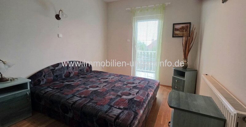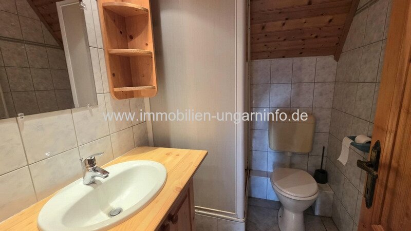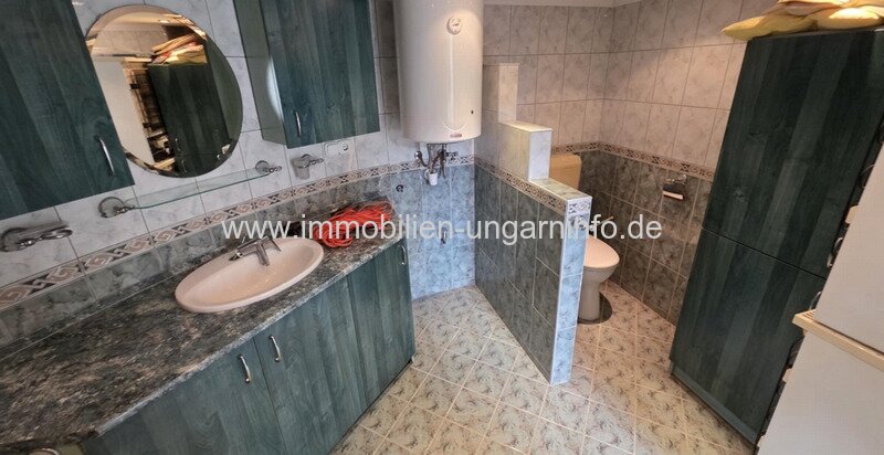 Aufteilung im Kellergeschoss: Zimmer, Küche, kleinerer Raum (ehemals Kellerraum) und separat zugängliches Badezimmer mit Eckbadewanne. Im Erdgeschoss: geräumige Terrasse, zwei Zimmer mit Balkon, Küche, Esszimmer, Badezimmer, Treppenhaus. Im Obergeschoss: 2 Zimmer mit Balkon (mit Panoramablick auf Zalakaros), Küche, Esszimmer, Badezimmer, Treppenhaus mit Balkon. Das Haus hat eine Nettofläche von ca. 90 m² (alle drei Etagen zusammen).